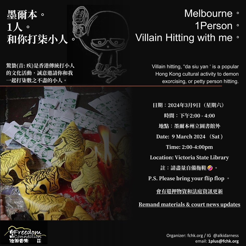 Villain hitting, “da siu yan‘ is a popular Hong Kong cultural activity to demon exorcising, or petty person hitting in the beginning of March. Join me.